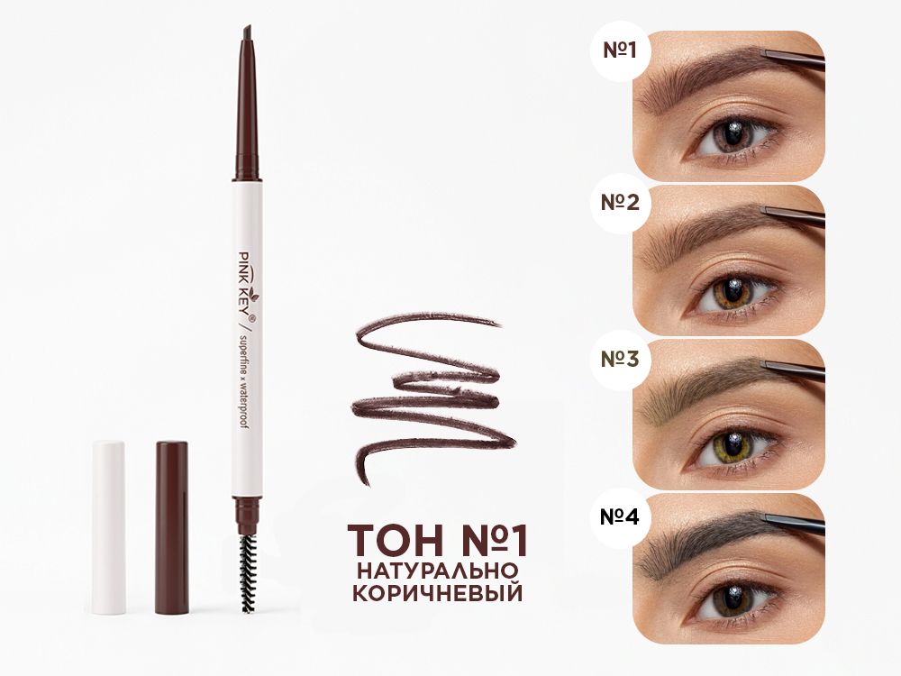 Карандаш для бровей выдвижной Pink Key, тон №1 Натурально коричневый