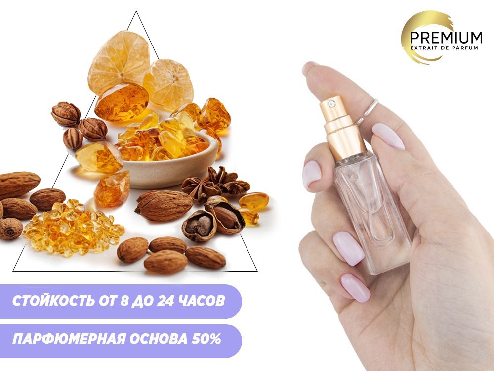 Глубокий, богатый и теплый аромат с характерными нотами амбры и древесных смол. Он окутывает своей мягкой и чарующей насыщенностью, создавая ощущение роскоши и элегантности. В этом запахе сочетаются теплоту и таинственность, подчеркивая индивидуальность и внутреннюю силу.
