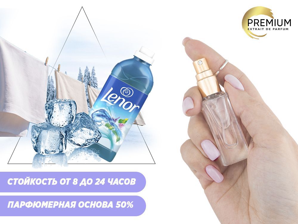 Чистота и свежесть в каждом дыхании. Аромат Lenor окутывает нежной мягкостью свежевымытого белья с деликатными цветочными и прохладными нотами. Он вызывает ощущение свежести утреннего воздуха, пробуждает чувство уюта и непринужденности, напоминая о заботе и аккуратности в повседневной жизни.