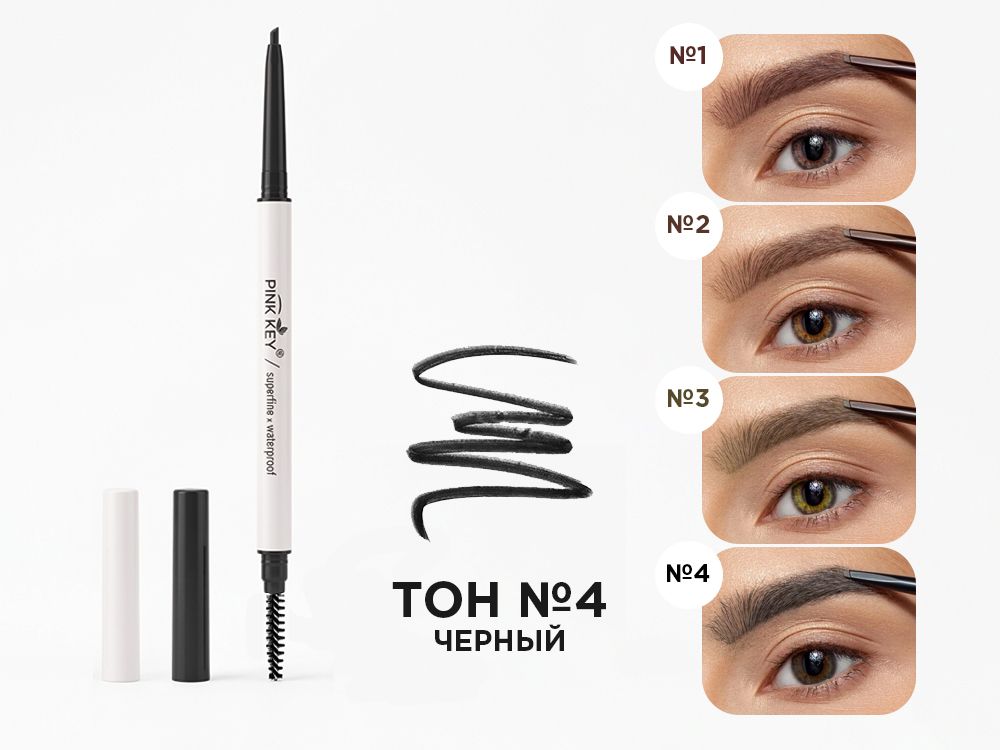 Карандаш для бровей выдвижной Pink Key, тон №4 Черный