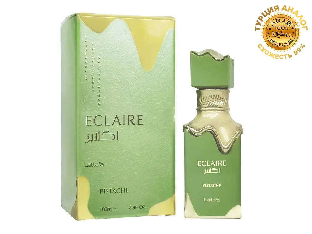 Lattafa Eclaire Pistache — гурманский ванильный унисекс-аромат, выпущенный в 2025 году арабским парфюмерным домом Lattafa. Парфюм продолжает линейку Eclaire, начатую в конце 2024 года выходом одноименного аромата. Аромат переносит вас в мир нежных сладостей и восточных мотивов. Мягкое и чуточку неожиданное сочетание гурманских нот в аромате создает атмосферу уюта, тепла и неповторимого очарования.