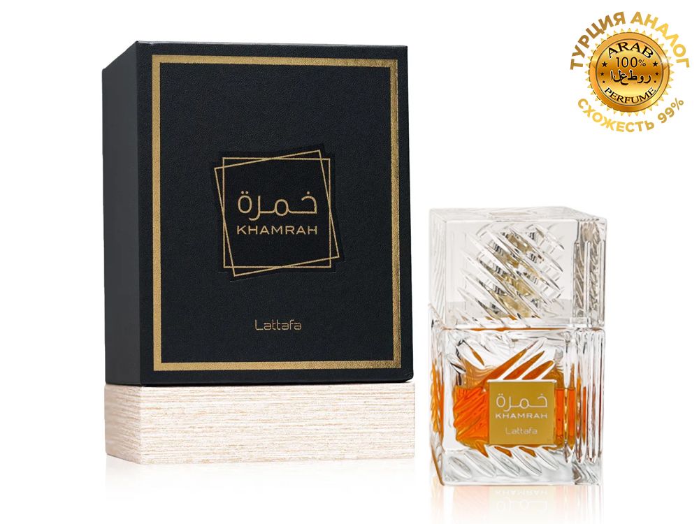 Lattafa Khamrah — роскошный восточно-пряный унисекс парфюм, сочетающий в себе драгоценные пряности, теплоту древесных нот и мягкость ванили. Аромат выпущен арабским брендом люксовой парфюмерии Lattafa Perfumes и одет в роскошный хрустальный флакон.